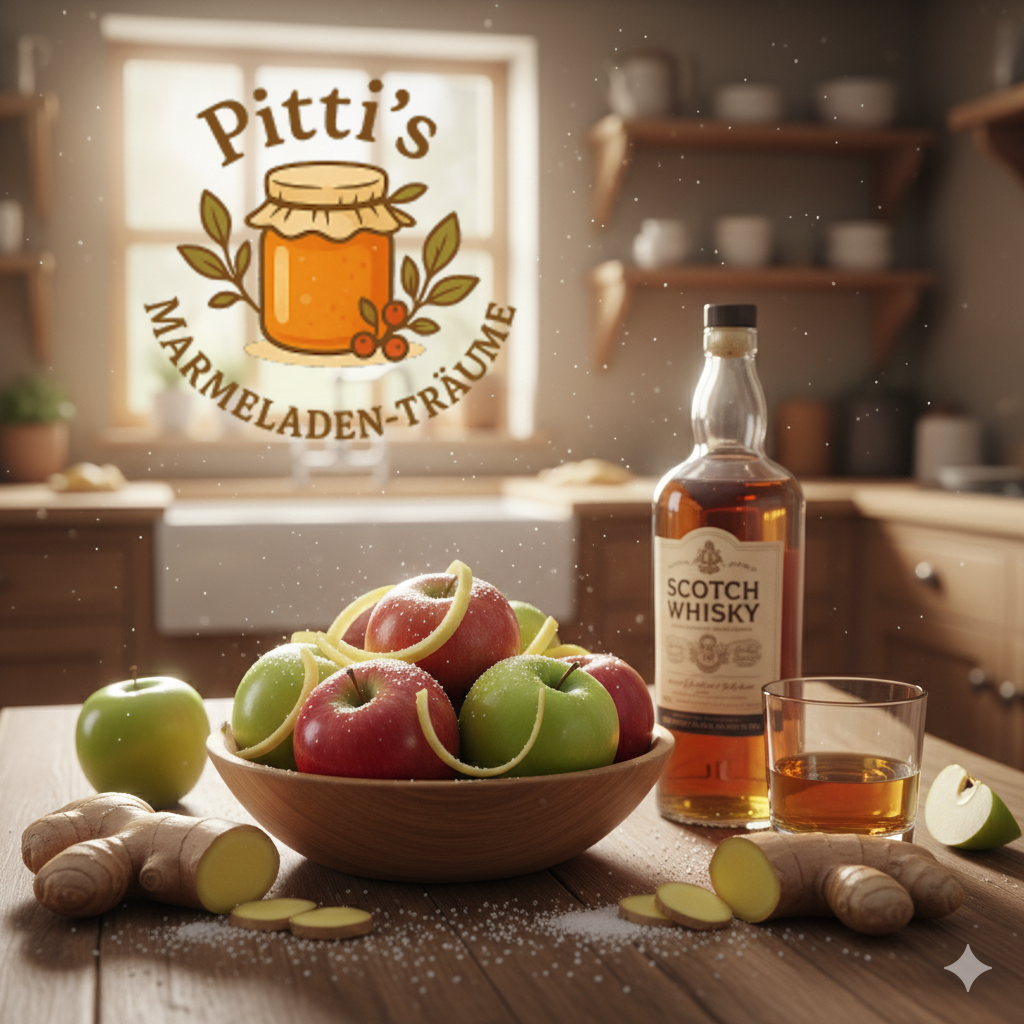 Apfel, Whisky (Blended Scotch Whisky, Zitronensäure, Gelierzucker 2:1, (250 ml)